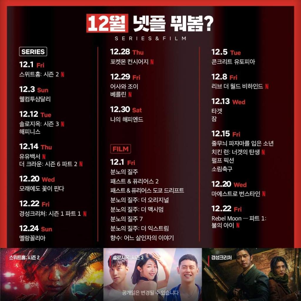 12월 한달동안 우리들의 안방을 채워줄 넷플릭스 2023년 12월 신작 영화 편