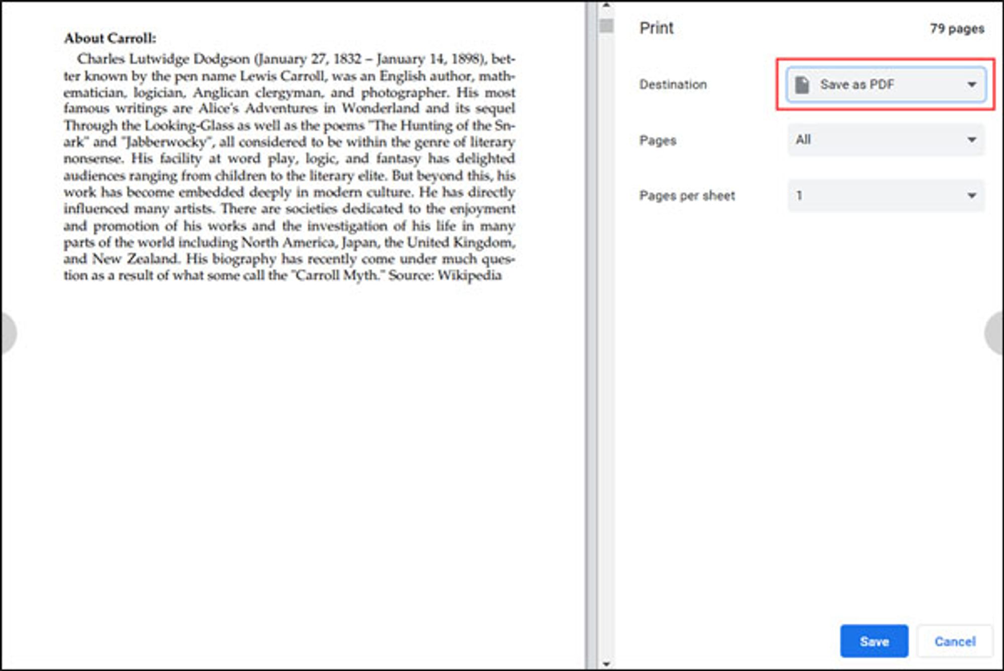 3) 이제 인쇄 아이콘 > PDF 파일로 저장 을 클릭하여 PDF 파일을 저장해야 합니다.