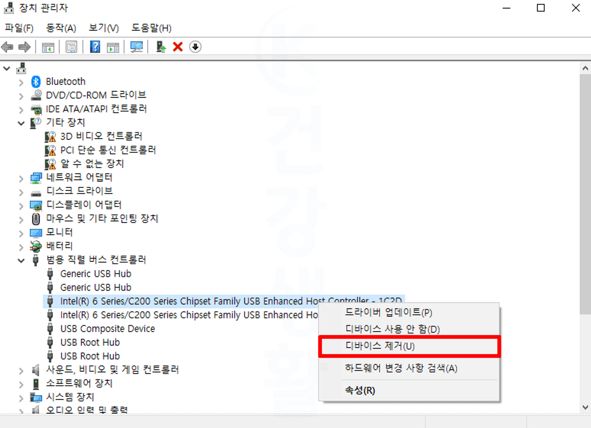3. 내 컴퓨터 메인보드 USB 장치를 찾아서 누릅니다.