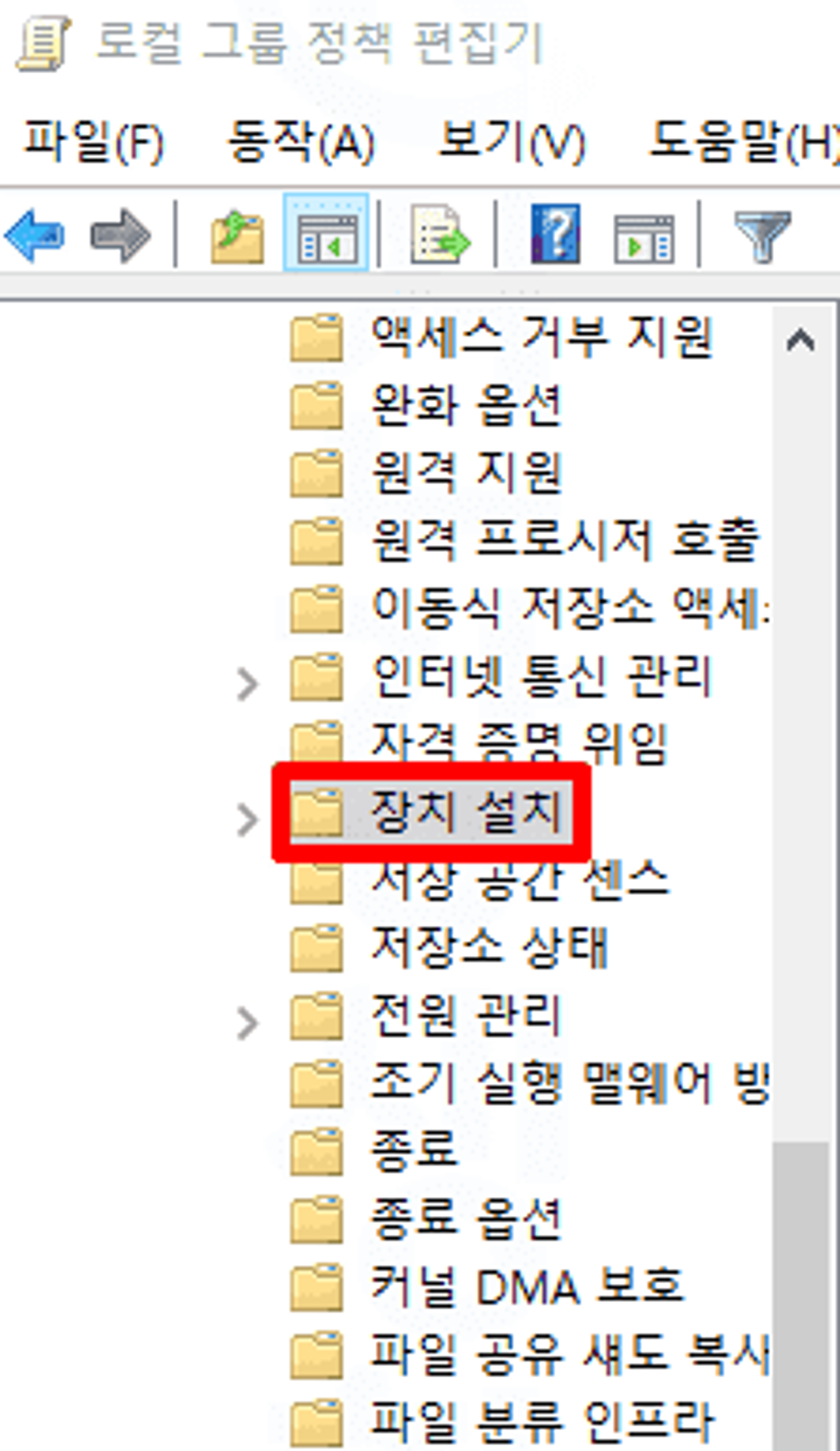 6. 우측에서 다른 정책 설정에 의해 기술된 장치 설치 방지를 클릭합니다.