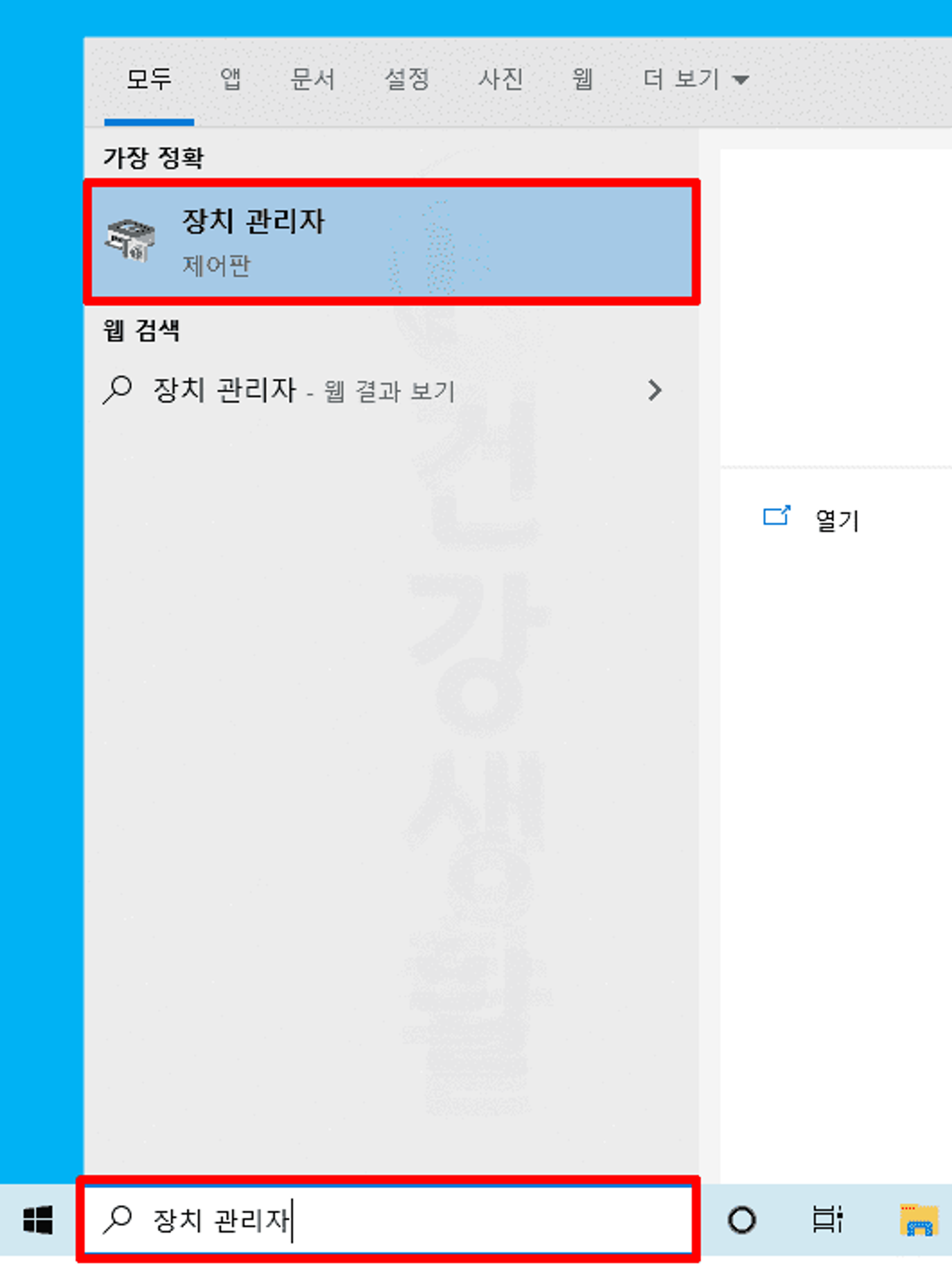 1. 컴퓨터 하단 검색창에서 [장치관리자]를 검색 후 실행합니다.